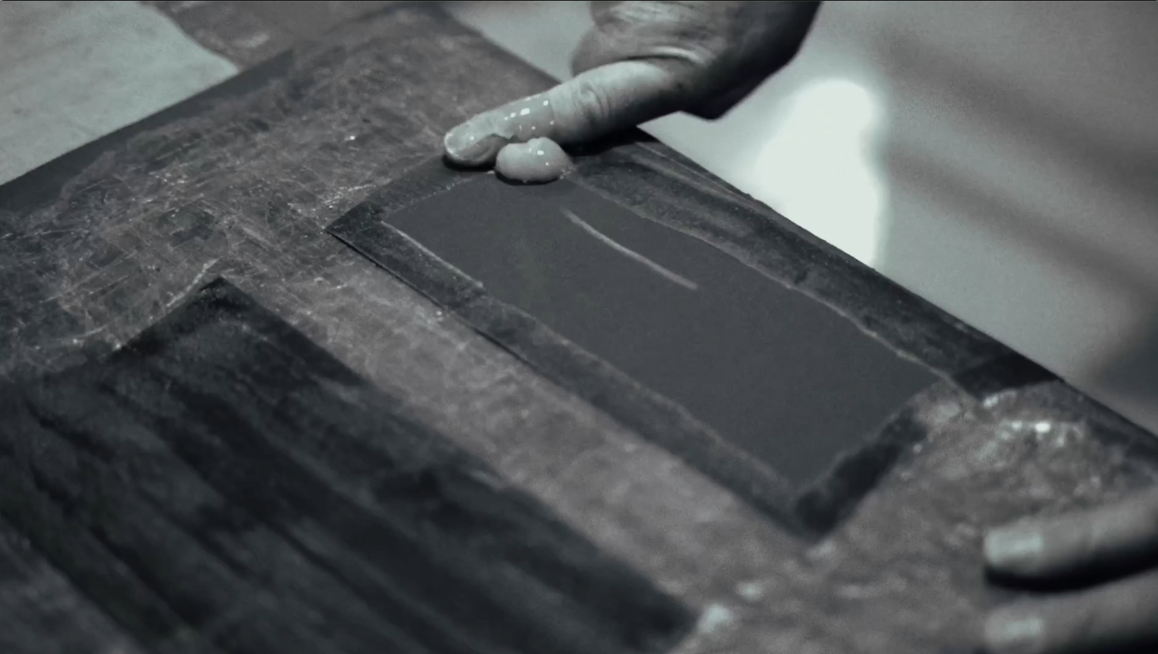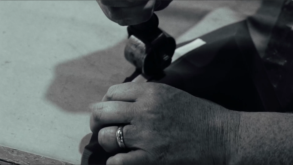 The Alexander Manufacturing coat makers then apply specifically formulated adhesive by hand, ensuring seamless bonding of fabric layers for superior durability and waterproofing.